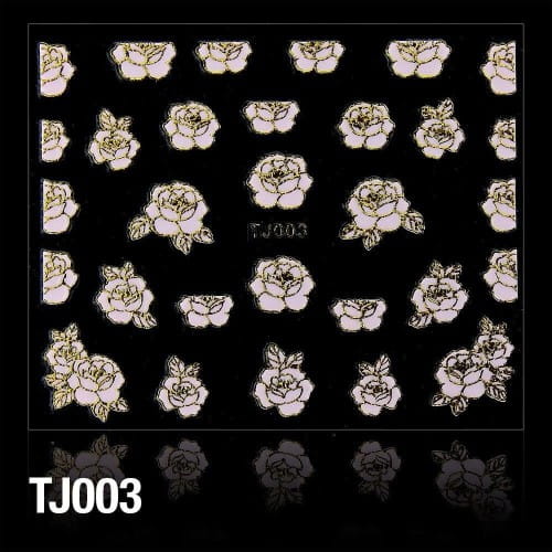 Naklejki 3D - Kwiatki TJ003 Pudrowy róż ze złotą obwódką - arkusz (1)