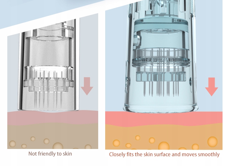 W urządzeniu zastosowano nowy typ kartridży, oprócz 3 stopniowej blokady zapewniającej jeszcze większe bezpieczeństwo i stabilność pracy, zmniejszona została średnica igieł z 0,25mm do 0,16mm, oraz poprawiona została końcówka zabiegowa kartridży, dzięki czemu ściśle przylega do skóry i gładko przesuwa się po jej powierzchni.