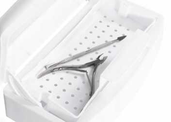 Sterylizator do narzędzi i pilników wykonany z solidnego tworzywa odpornego na działanie preparatów do dezynfekcji. Łatwy w obsłudze. Prosta konstrukcja pozwala na utrzymanie go w idealnej czystości. Wysuwana szufladka pozwalana na dokładne osuszenie sterylizowanych narzędzi.